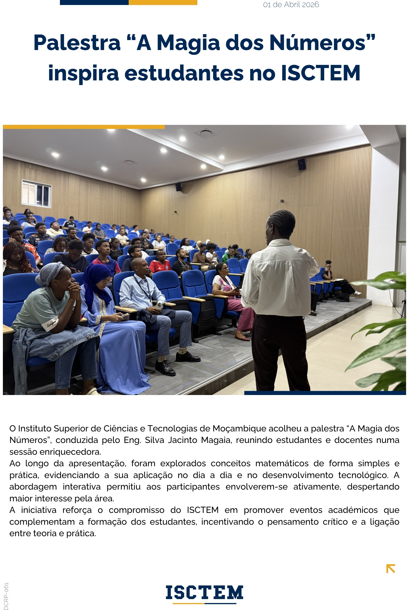 Procuramos estudantes que se destaquem pela sua energia, curiosidade intelectual e vontade de fazer a diferença – em sala de aula, nas actividades extracurriculares, em projectos e na investigação científica. Se és movido por desafios e tens sede de conhecimento, o ISCTEM é o teu lugar.