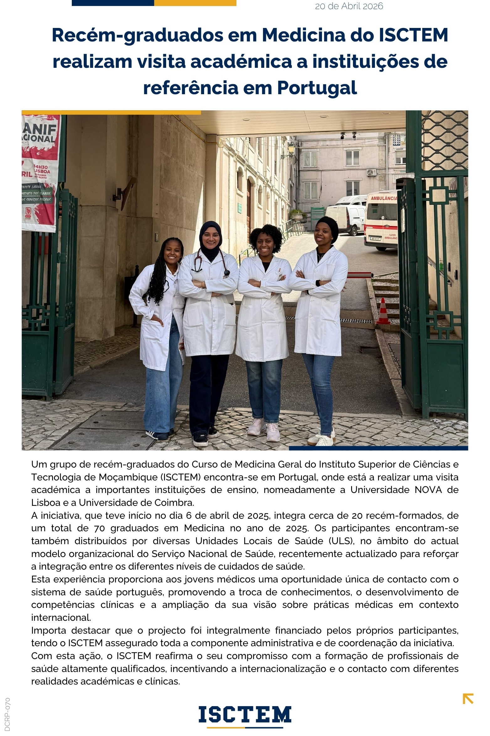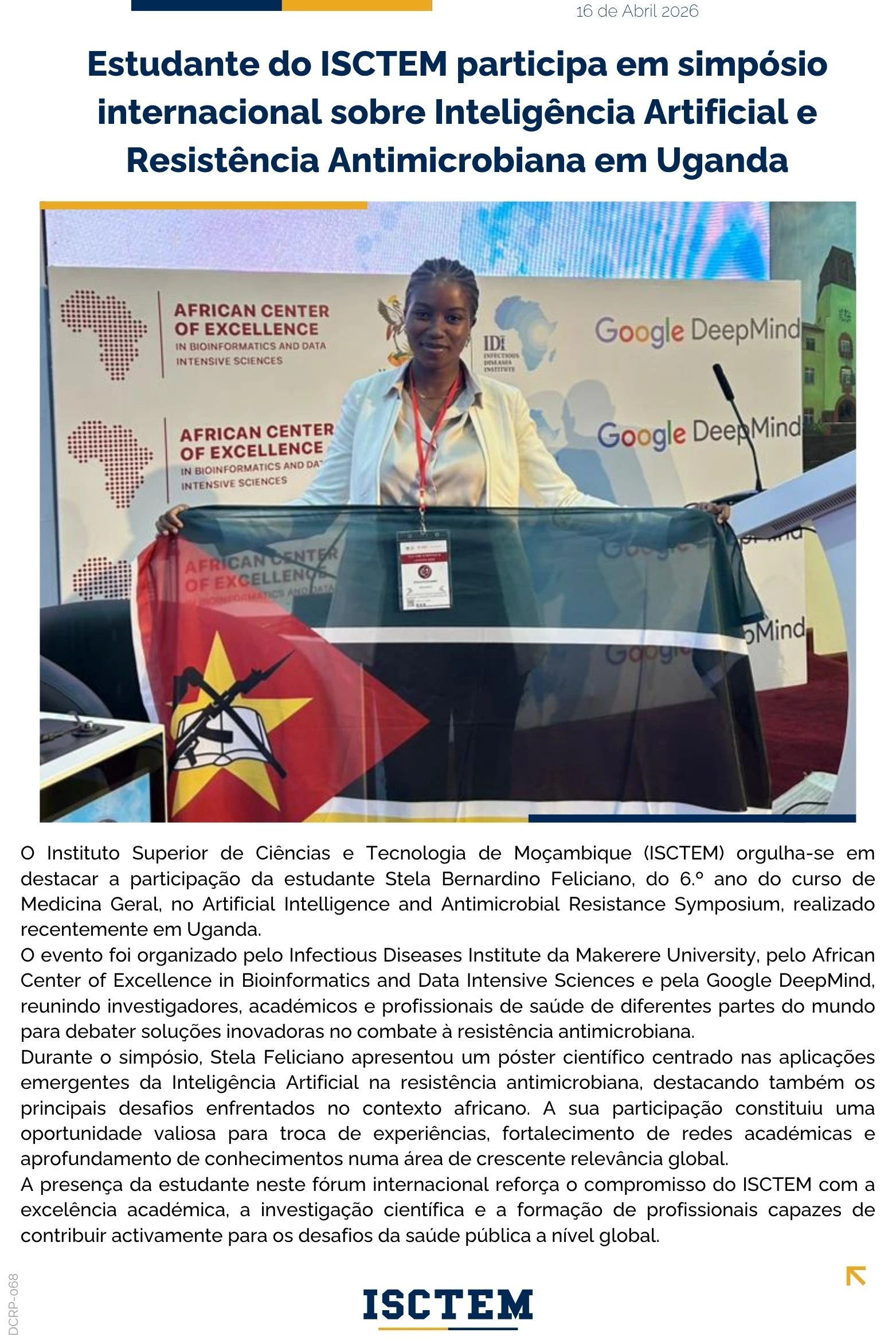 Estudante do ISCTEM participa em simpósio internacional sobre Inteligência Artificial e Resistência Antimicrobiana em Uganda
